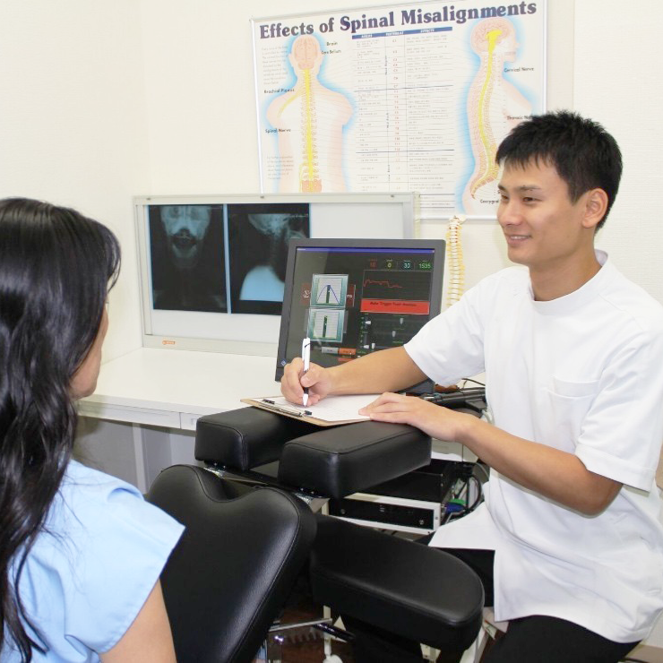 当院では、先生が体をボキボキするような危険な施術はいたしません。最新のコンピューターは安全・確実・低刺激な施術が可能で5歳から89歳の高齢者の方まで安心して治療を受けて頂いております。